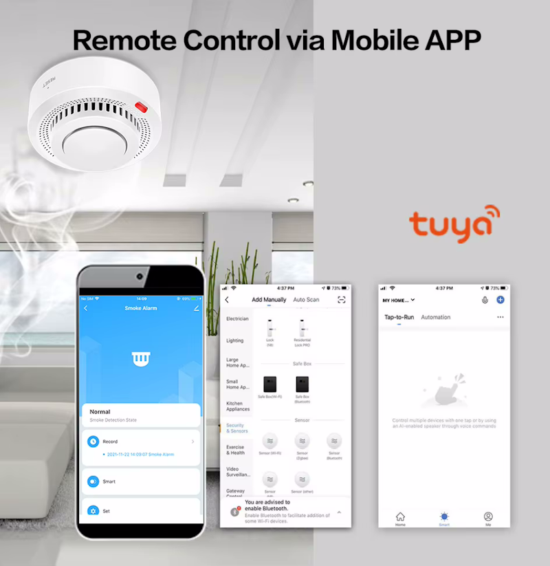 • Contrôle à distance via l'application Smart Life :Ce détecteur de fumée intelligent peut être contrôlé via l'application Tuya Smart Life, vous permettant de surveiller la sécurité de votre maison de n'importe où et à tout moment.
