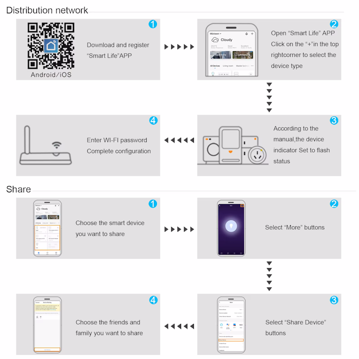 Tant que votre téléphone intelligent ou votre tablette dispose d'un réseau 4G ou WIFI, vous pouvez contrôler vos lumières via l'application « Tuya smart ou Smart Life ».