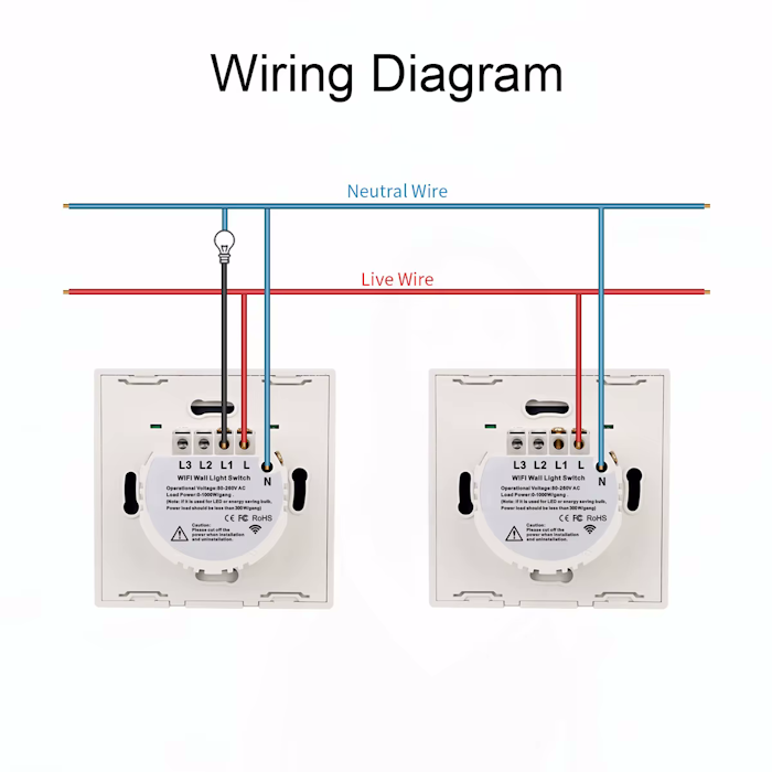 【Instructions de câblage】 : 1 Gang connecter la borne "L 1", 2 Gang connecter la borne "L 2", 3 Gang connecter la borne "L 3". Situé aux positions "L1", "L2" et "L3" se réfère à la commande de l'ampoule. 1 Way est qu'il peut seulement allumer ou éteindre les lumières dans un seul endroit.