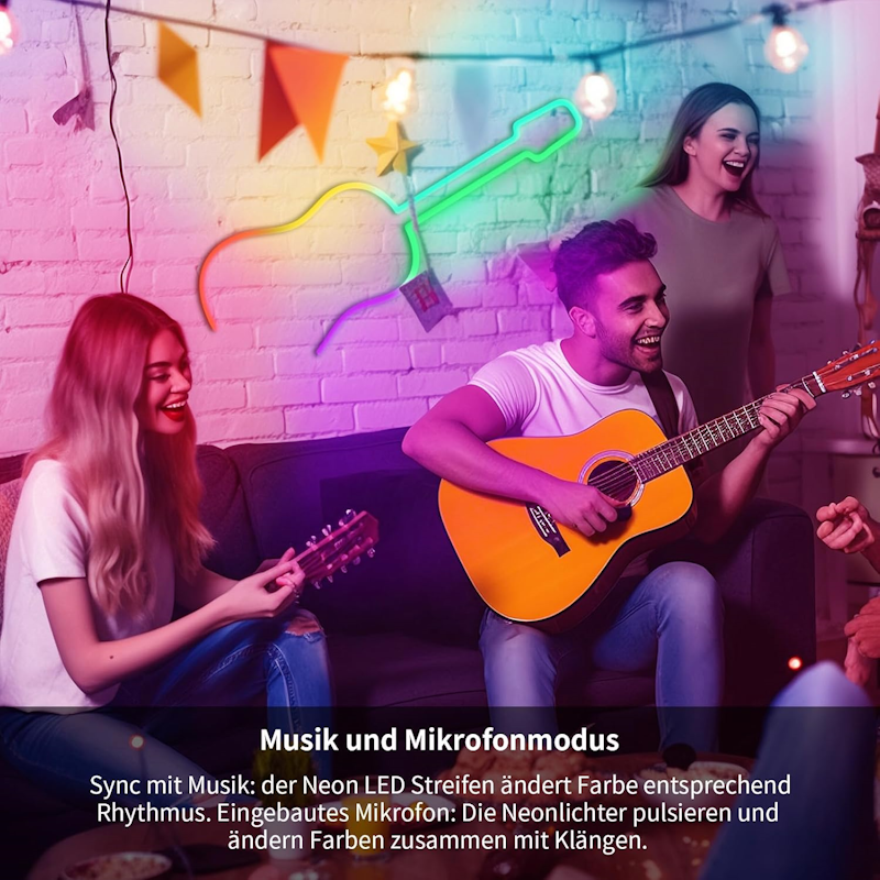 Synchronisation de la musique : augmentez votre temps de fête avec la bande LED néon, microphone intégré pour détecter et comparer l'audio de la musique et du jeu avec des effets qui réagissent en temps réel, ce qui peut créer une atmosphère passionnante, ce qui est un bon choix pour les fêtes et les jeux.