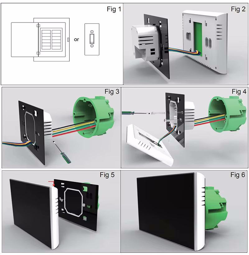 Une boîte cachée de 86 mm et une boîte ronde européenne de 60 mm conviennent.