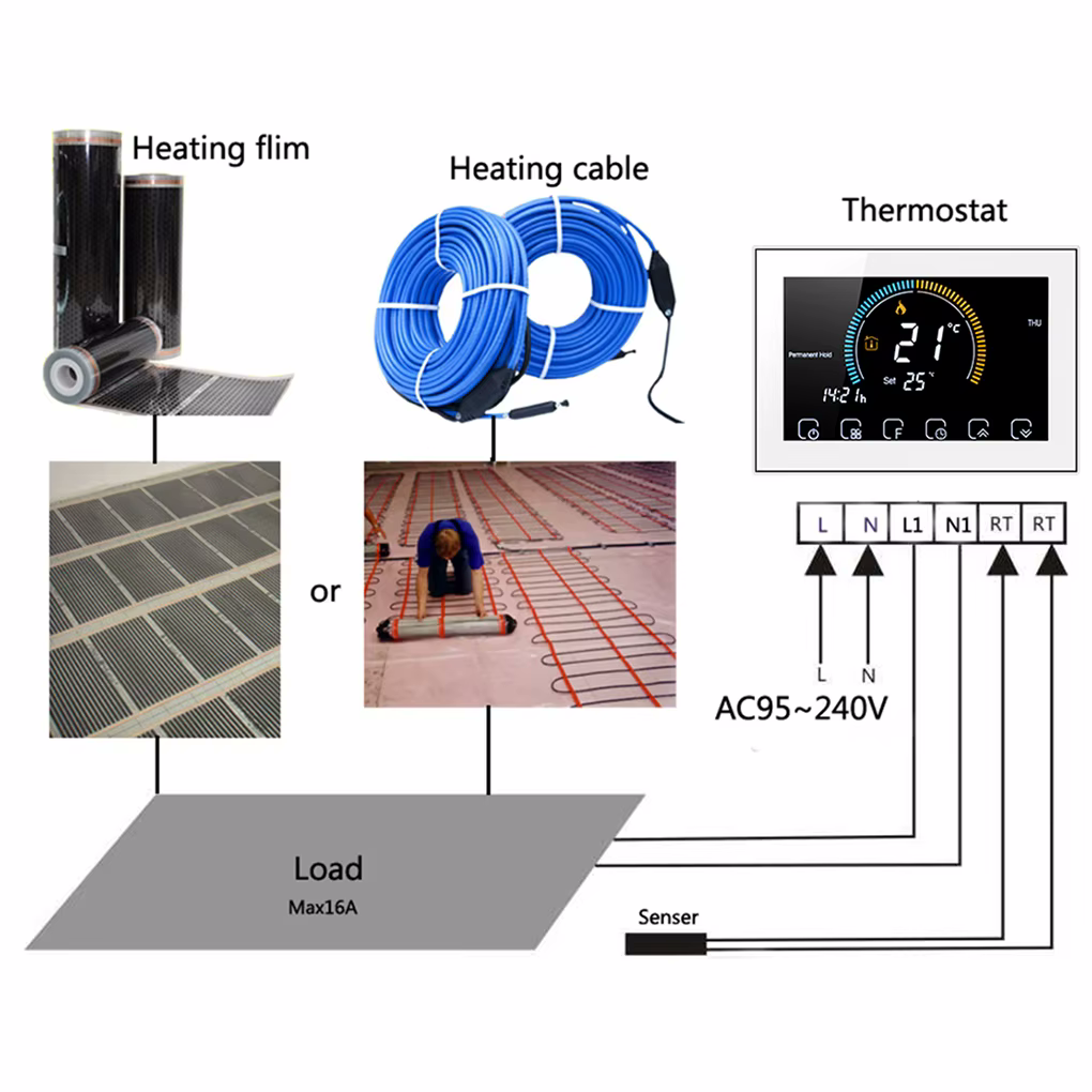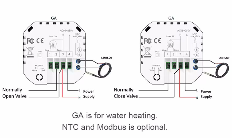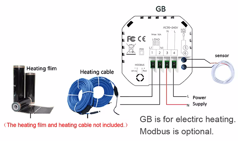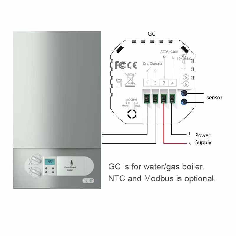 Le chauffage électrique dispose d'un capteur externe, d'un chauffage par eau et d'une chaudière à gaz sans capteur externe