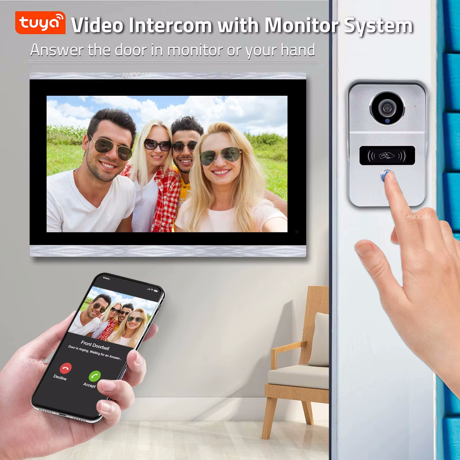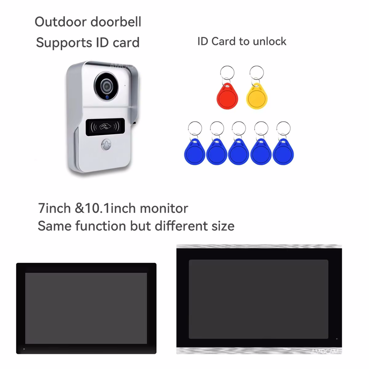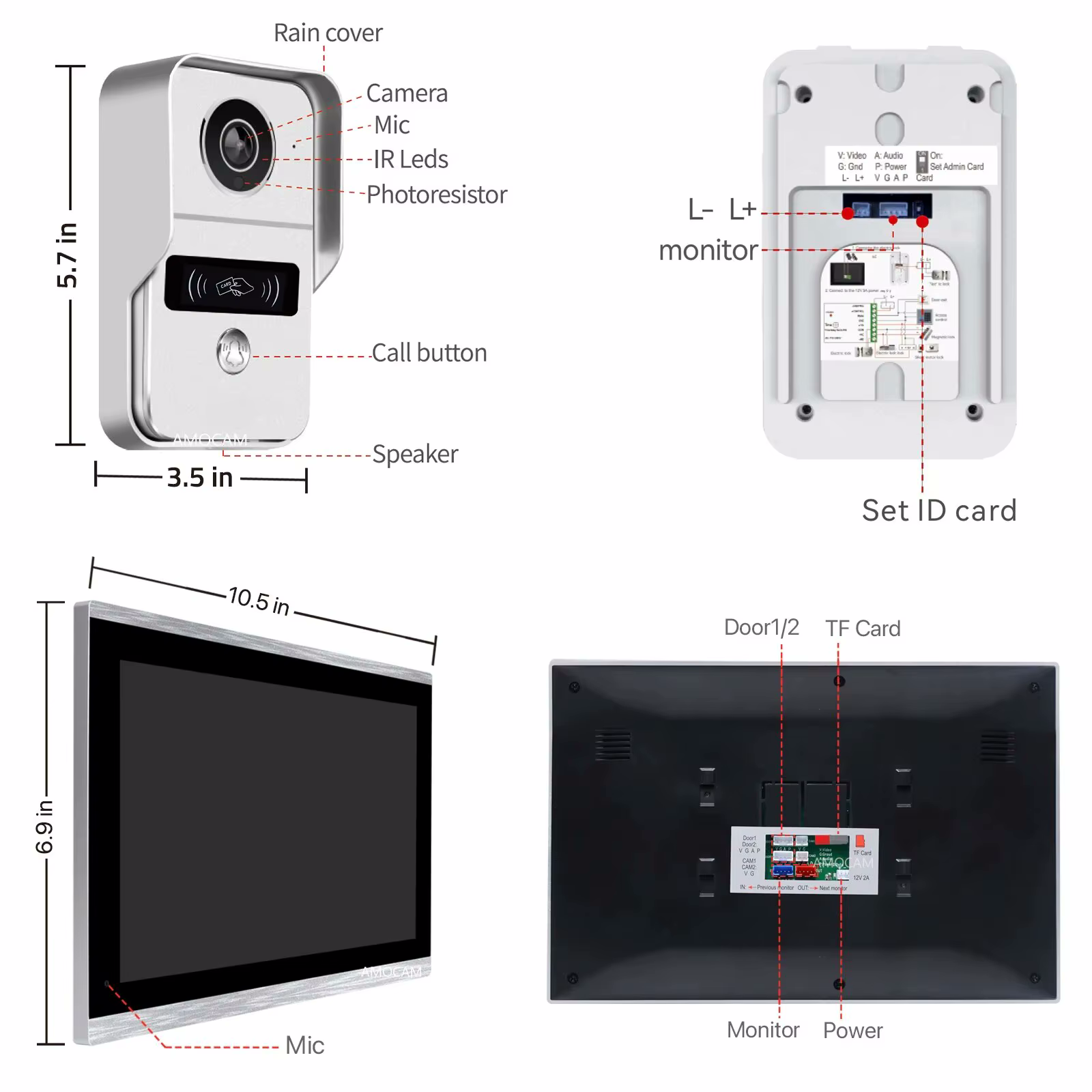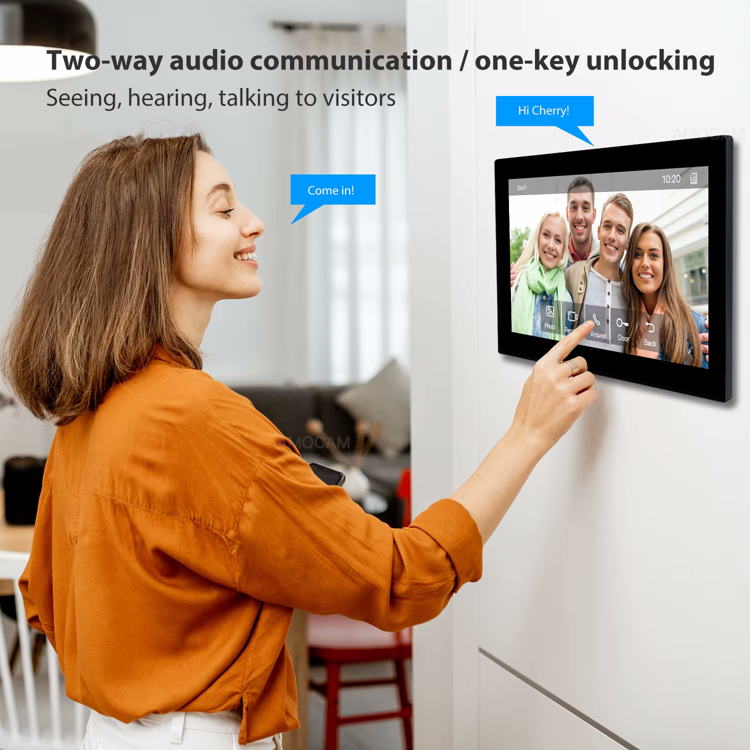 【10" IP écran tactile et Sonnette de caméra 1080P】Facile à utiliser avec l'écran tactile.Résolution 1080P et infrarouge intégrée pour une vision nocturne plus nette. Il peut connecter la plupart des types de serrures électroniques. Vous pouvez ouvrir la porte par badges,mais aussi par l'écran et l'application.