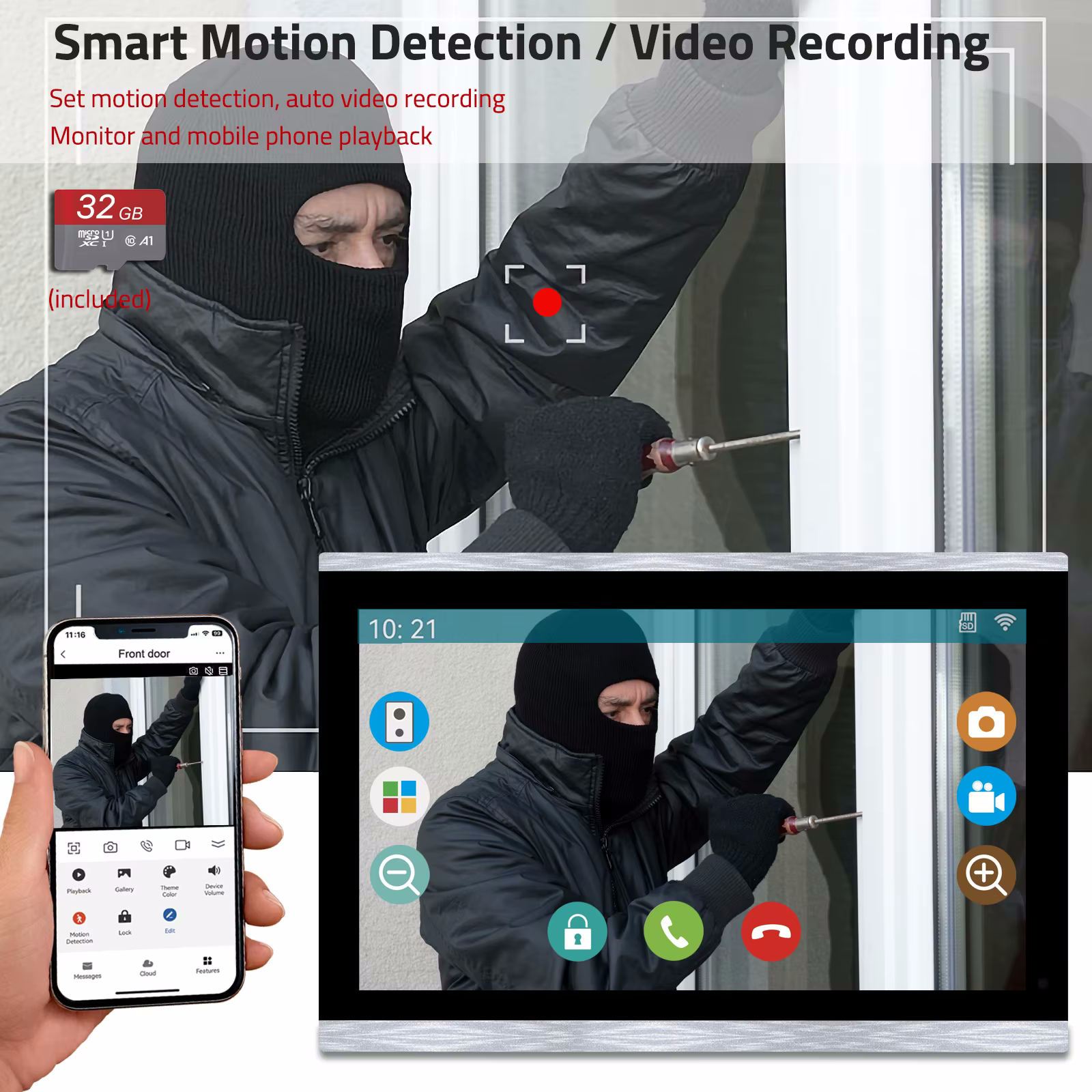 Votre gardien de la famille. Interphone vidéo fournit de nombreuses solutions,idéal pour l'intérieur et l'extérieur,pour la maison, le Bureau, l'hôtel, l'école,etc...Visiophone wifi vous permet de visualiser les visiteurs et de les contrôler à distance via une application pour téléphone portable, ouvrant votre vie intelligente. Nous cryptons et protégeons les informations de contrôle d'accès et d'application.