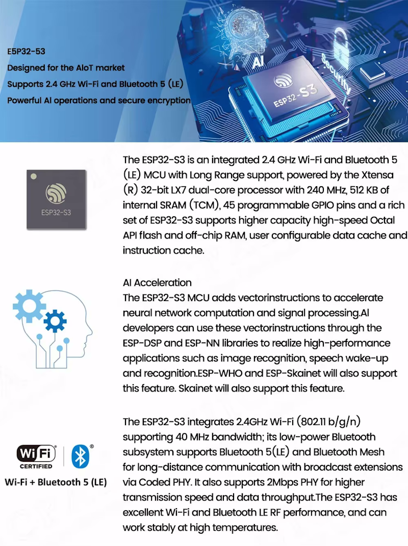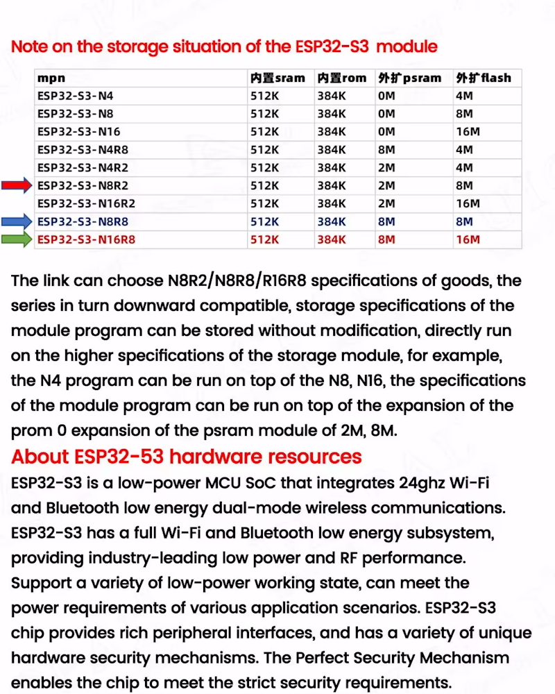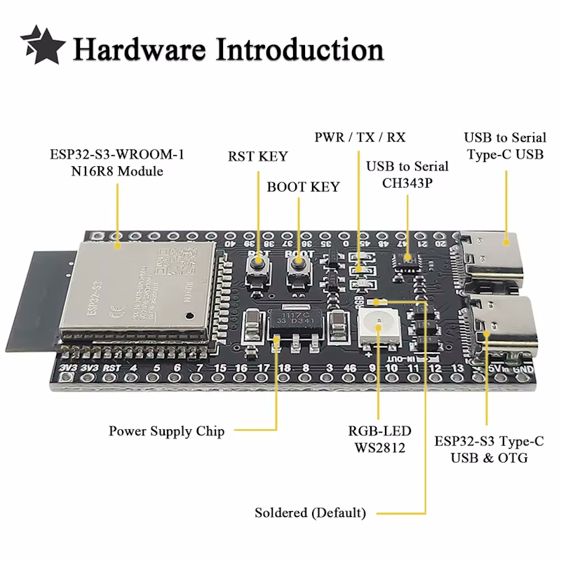 PrésentationCarte de développement de Module BT Wifi ESP32-S3 pour Arduino IDE ESP32-S3-WROOM1 N16R8 N8R2 44Pin type-c 16 mo Flash 8M PSRAM ESP32 S3