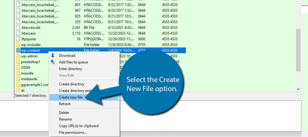 Bien que vous puissiez télécharger un fichier sur le serveur Web à l'aide de FileZilla, vous pouvez également simplement créer un nouveau fichier sur le serveur Web lui-