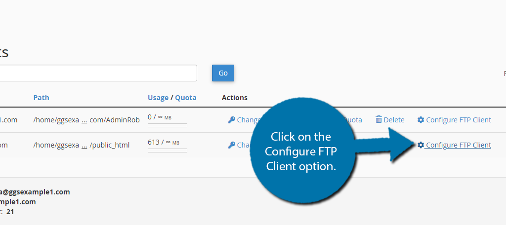 Vous verrez la section Ajouter un compte FTP. Ici, vous pouvez créer un compte FTP pour vous connecter à FileZilla, ou à n'importe quel FTP d'ailleurs.