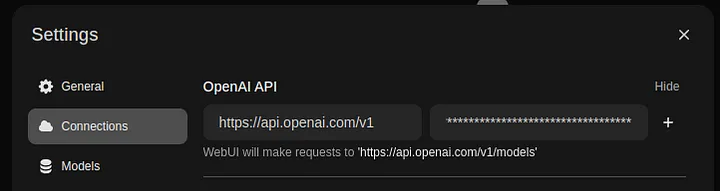Configurer OpenAI (facultatif) : définissez la clé API OpenAI. Cela permet à Open WebUI de se connecter directement à OpenAI.