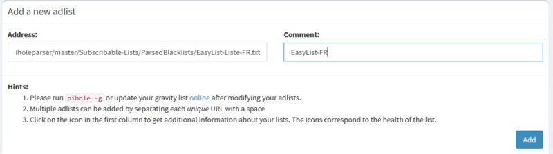 Pour l'ajouter, il faut tout d'abord se connecter à l'interface admin : http://<ip_du_PiHole>/admin