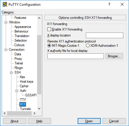 PuTTY n'implémente pas de serveur X11 (côté affichage), mais il peut fonctionner avec d'autres produits implémentant la fonctionnalité de serveur X sous Windows. XMing est une alternative gratuite populaire .