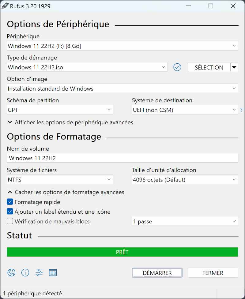 Rufus est un utilitaire permettant de formater et de créer des média USB démarrables, tels que clés USB, mémoire flash, etc.