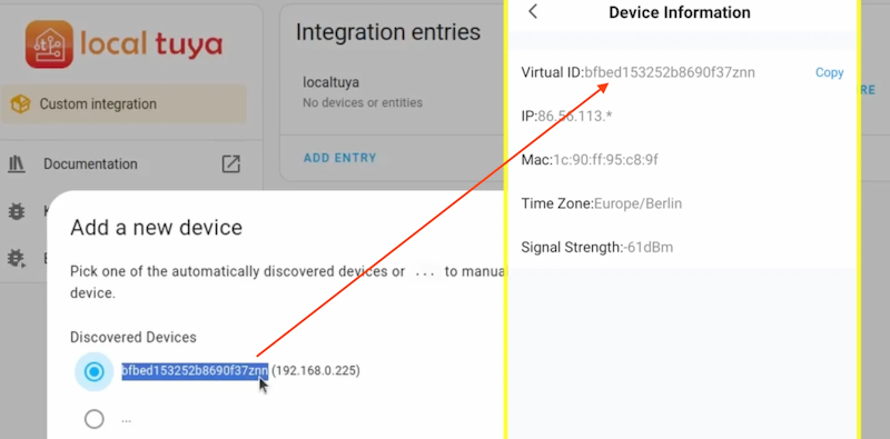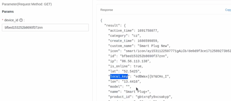 Maintenant, il vous montrera l'identifiant de votre appareil Tuya.