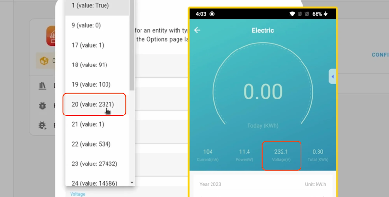 Maintenant, dans la quatrième colonne, comparez les valeurs avec l'application Smart Life.