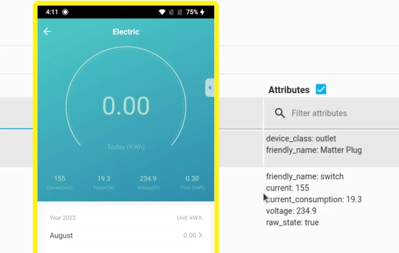 Nous utiliserions les valeurs de consommation d'énergie qui s'affichent dans l'application Smart Life pour configurer correctement la prise dans Local Tuya.