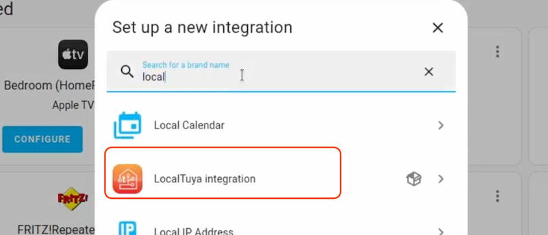 Une fois cela fait, nous rechercherons cette prise qui est connectée à votre réseau Wifi à l’aide de l’intégration locale Tuya.