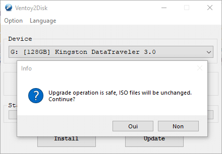 Ventoy est un outil récent et qui offre donc des mises à jour régulières. Il est possible de mettre à jour Ventoy facilement sans que cela ne détruise la partition qui contient toutes vos ISO (pratique !).
