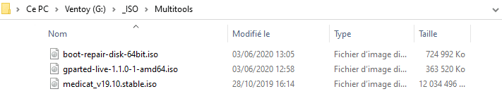 7_Voilà ! Votre clé USB est prête vous pouvez maintenant ajouter les ISO dans la partition Ventoy créer sur votre Clé USB. Les ISO peuvent être disposées directement à la racine ou bien dans des dossiers, cela n’a pas d’importance.