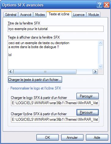 Pour personnaliser votre archive SFX, vous pouvez ajouter un logo a gauche et un icone.