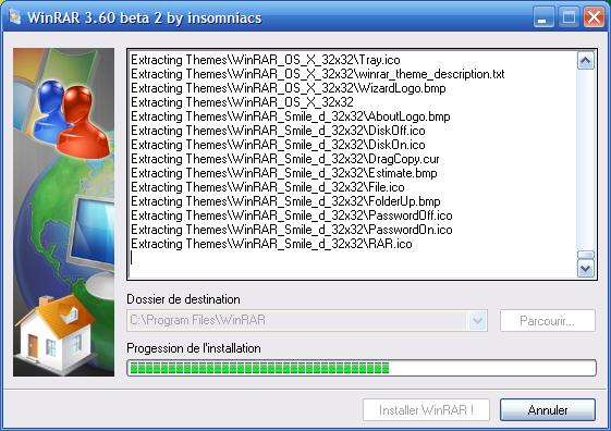 L'installtion remplacera votre ancienne version de WinRAR. Pour que l'installation ce termine il ne faut pas qu'il y ai d'autre instances de WinRAR ouvertes !!!