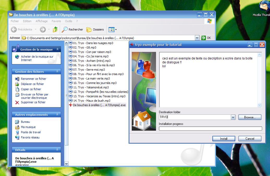 A gauche vos fichiers, et a droite votre "programme dinstallation".