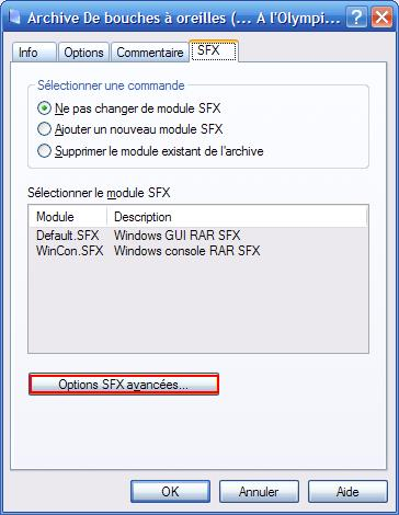 Allez sur l'onglet SFX, puis cliquez sur Options SFX avancées...