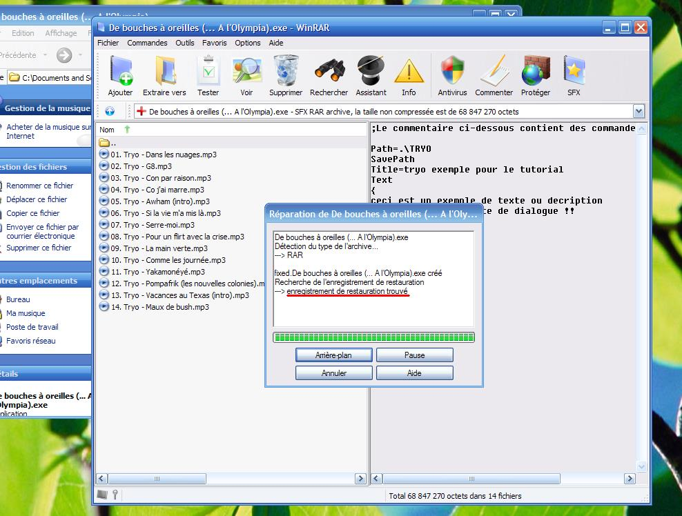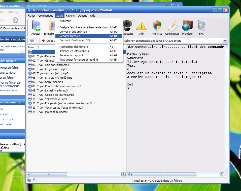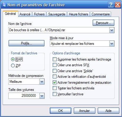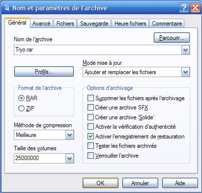 Ici nous allons aborder la réparation d'une archive. Pour une réparation optimale, il faut...que celui qui a créé l'archive ai activé l'enregistrement de restauration ! Et oui !