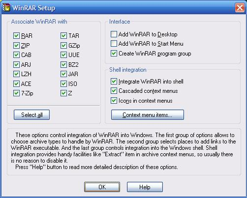 Cochez toutes les cases de droites. Ce sont les associations de fichiers. Ainsi, à l'avenir, WinRAR pourra ouvrir tous ces fichiers et même d'autres fichiers contener qui n'apparaissent pas forcément sur cette liste. Cochez TOUTES les cases cochées sur ce screen. Cela vous donnera un menu en cascade, ainsi que l'utilisation des icones dans le menu contextuel. Une fois tout ceci fait, cliquez sur OK, puis sur Done !